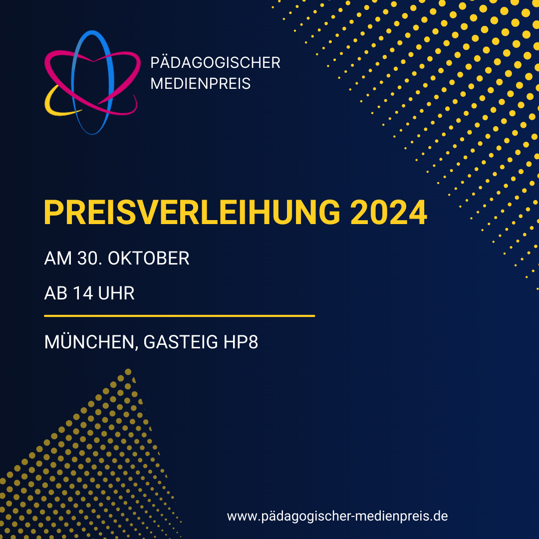 Die Gewinner stehen fest. Welche herausragenden Medienprodukte ausgezeichnet werden, erfahrt ihr bei der Preisverleihung des Pädagogischen Medienpreises am 30. Oktober in München.
