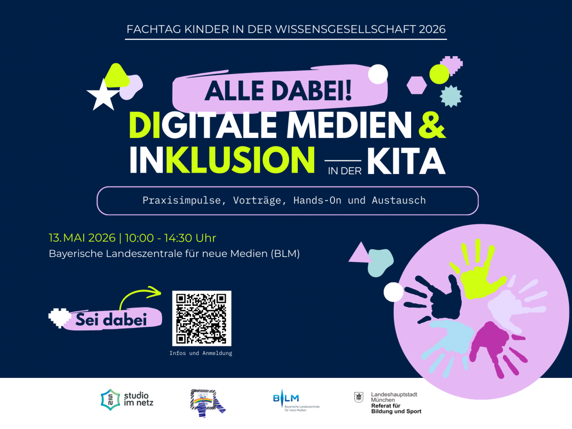 Der Fachtag „Kinder in der Wissensgesellschaft“ findet am Mi, 13. Mai 2026 in der Zeit von 10:00 – 14:30 Uhr in der Bayerischen Landeszentrale für neue Medien (BLM) statt.