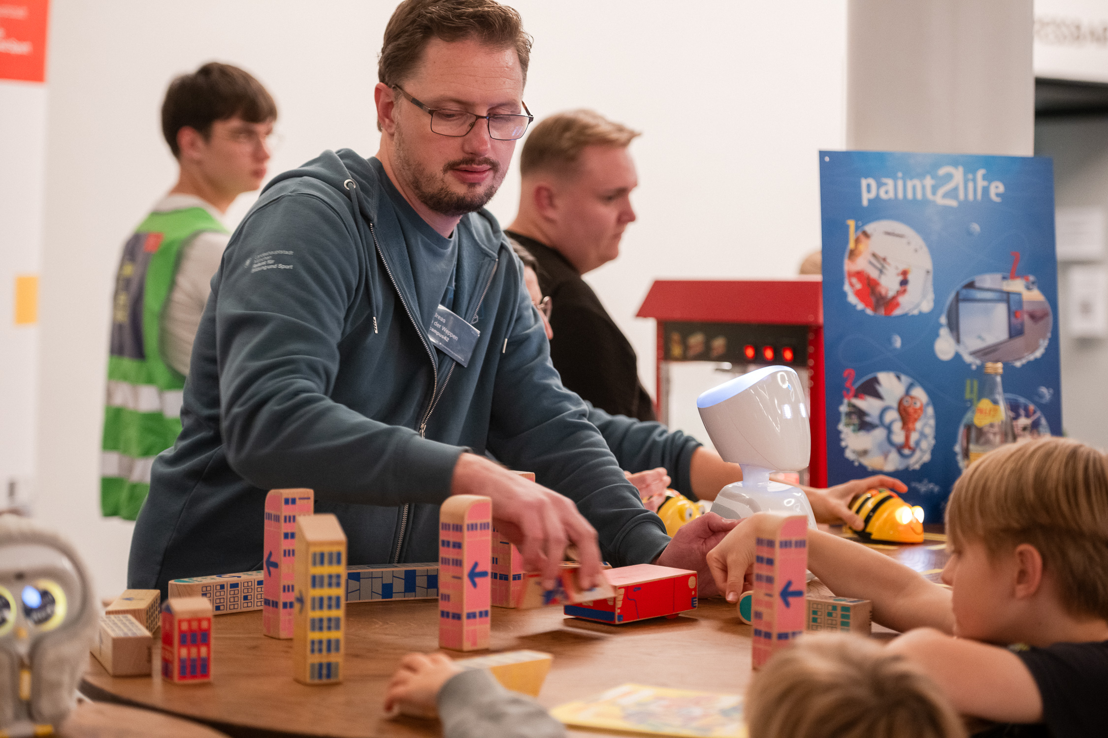 Viele verschiedene Einrichtungen aus München haben ein Angebot zum kompetenten Umgang mit digitalen Medien für alle Altersklassen mitgebracht. Von haptischen Spielen über Mikroskope für Kinder bis hin zu 3D-Druckern, Lasercuttern und 3D-Scannern war alles dabei. Bevor die Besucher*innen neue Einblicke sammeln durften, gab es ein Grußwort von Stadträtin Julia Schönfeld-Knor. Unser kleiner Roboter Nao hat mit seiner Version des Macarena-Tanzes alle aufgewärmt, sodass es mit viel Motivation endlich losgehen konnte. Nach der Testphase wurden noch die Glücklichen des Gewinnspiels gezogen und konnten ihre jeweiligen Preise abholen.