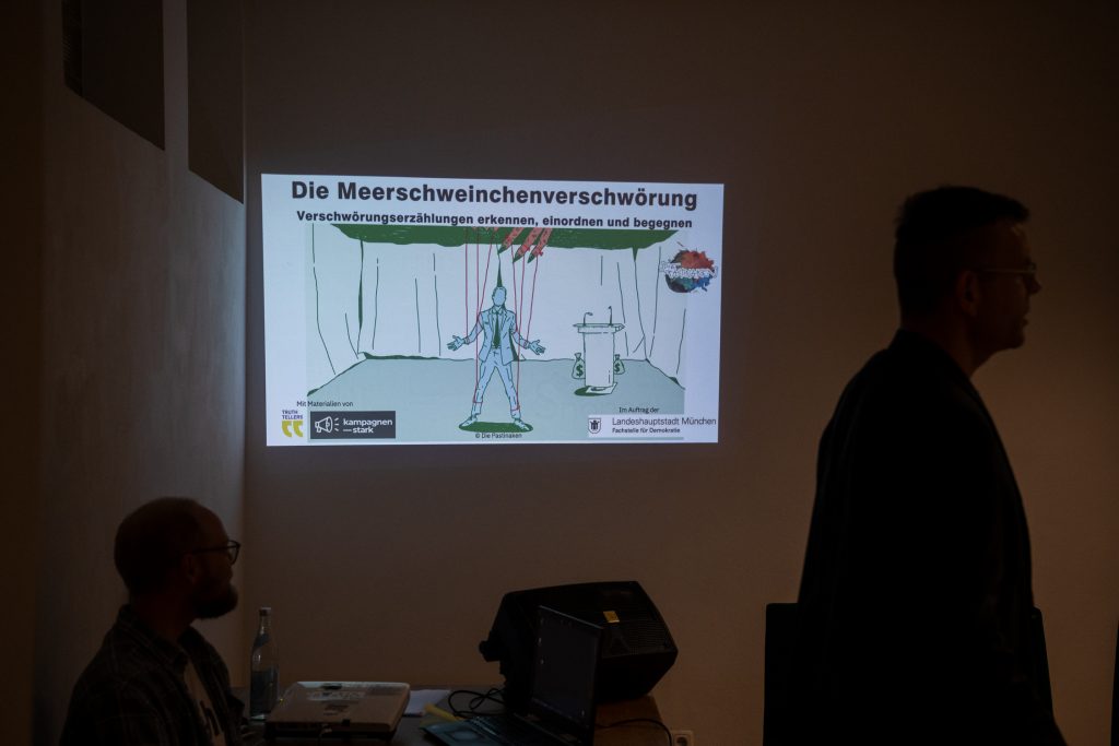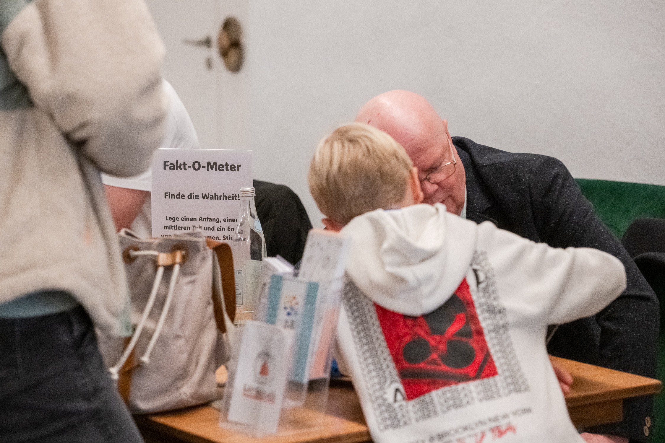 Fünf praxisnahe Workshops boten Raum für Austausch und vertiefte Einblicke in die Themen KI, Fake News, Verschwörungserzählungen, Mediensucht und einen achtsamen Umgang mit Medien in der Familie. An den verschiedenen Infoständen Münchner Einrichtungen konnten individuelle Fragen gestellt und der Austausch mit anderen Eltern, Fachkräften und Engagierten gesucht werden. Für Kinder gab es diverse Kreativ-Stationen zum entdecken, spielen und ausprobieren.