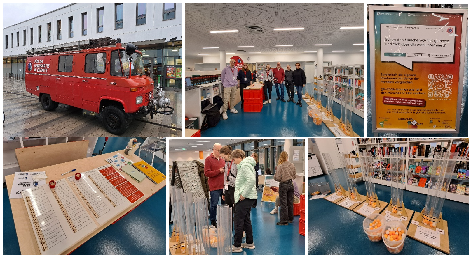 Auf Initiative der Sprecherin des Facharbeitskreises Kinder, Jugend und Familie, der Stadtbibliothek Am Westkreuz und des BildungLokals Neuaubing-Westkreuz machte im Vorfeld der Kommunalwahlen das Demokratiemobil des Kreisjugendrings München Stadt im Paul-Ottmann-Zentrum Halt. Aufgrund der schlechten Wetterbedingungen fand die Veranstaltung in der Stadtbibliothek Am Westkreuz statt. Das Team des Demokratiemobils kam vor Ort mit vielen jungen und älteren Bürgerinnen und Bürgern ins Gespräch, erfasste ihre Stimmungen und Bedarfe, zeigte politische Beteiligungsmöglichkeiten auf und ermutigte sie zur aktiven Teilnahme an den verschiedenen spielerischen Stationen. Mit seinem fundierten Wissen konnte das Team des Demokratiemobils auch komplexe Themen rund um die Kommunalwahl für alle gut und verständlich erklären. Es wurden auch Personen erreicht, die sonst keinen oder wenig Zugang zu politischer Bildung suchen oder finden.